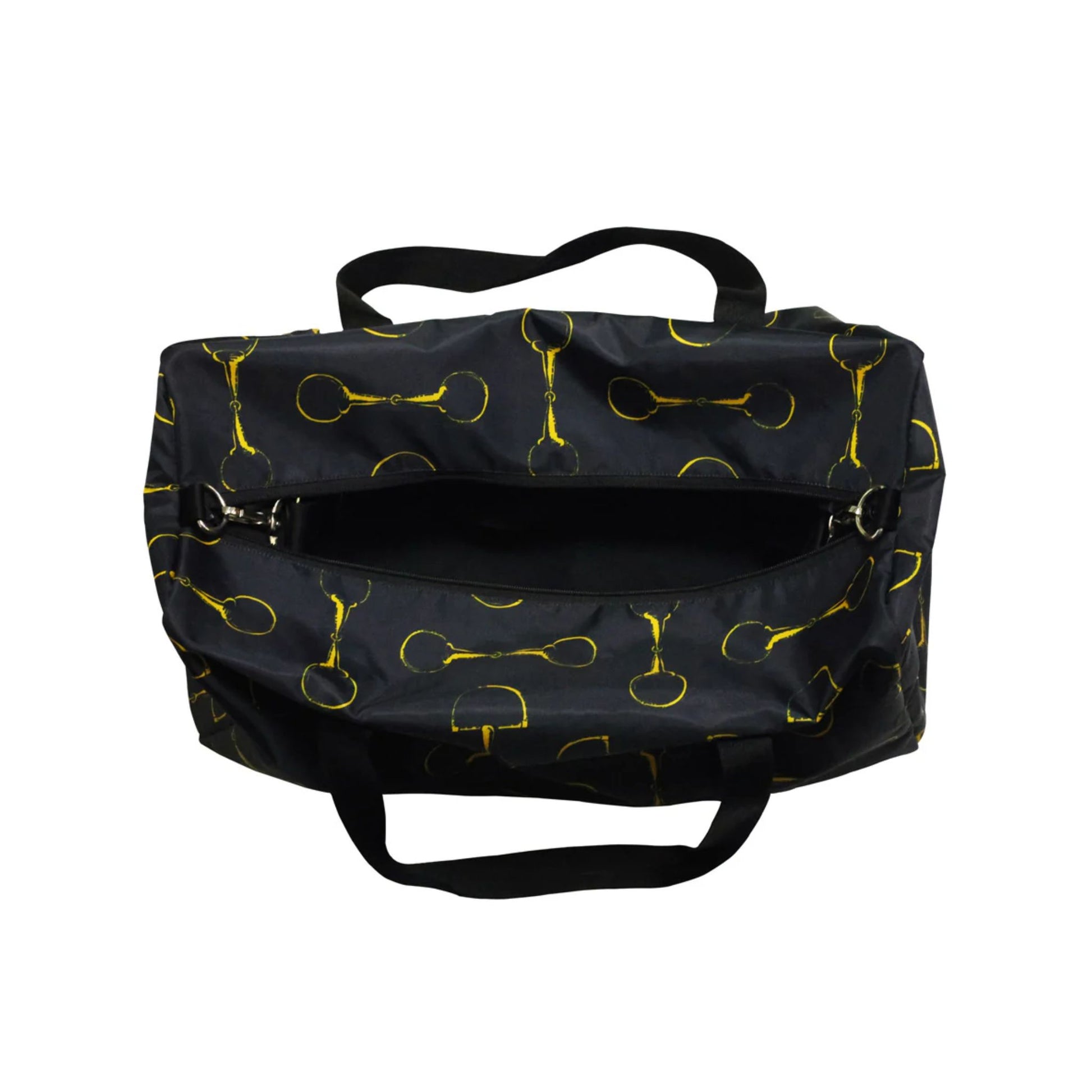 Ride in style with the AWST Int'l Lila Vintage Snaffles Duffel Bag. Perfect for equestrians at every level, this snazzy bag features both interior and exterior pockets for easy organization, along with a removable adjustable shoulder strap and carry handles for comfy transport. No horsing around, this bag is a must-have for any equestrian enthusiast!