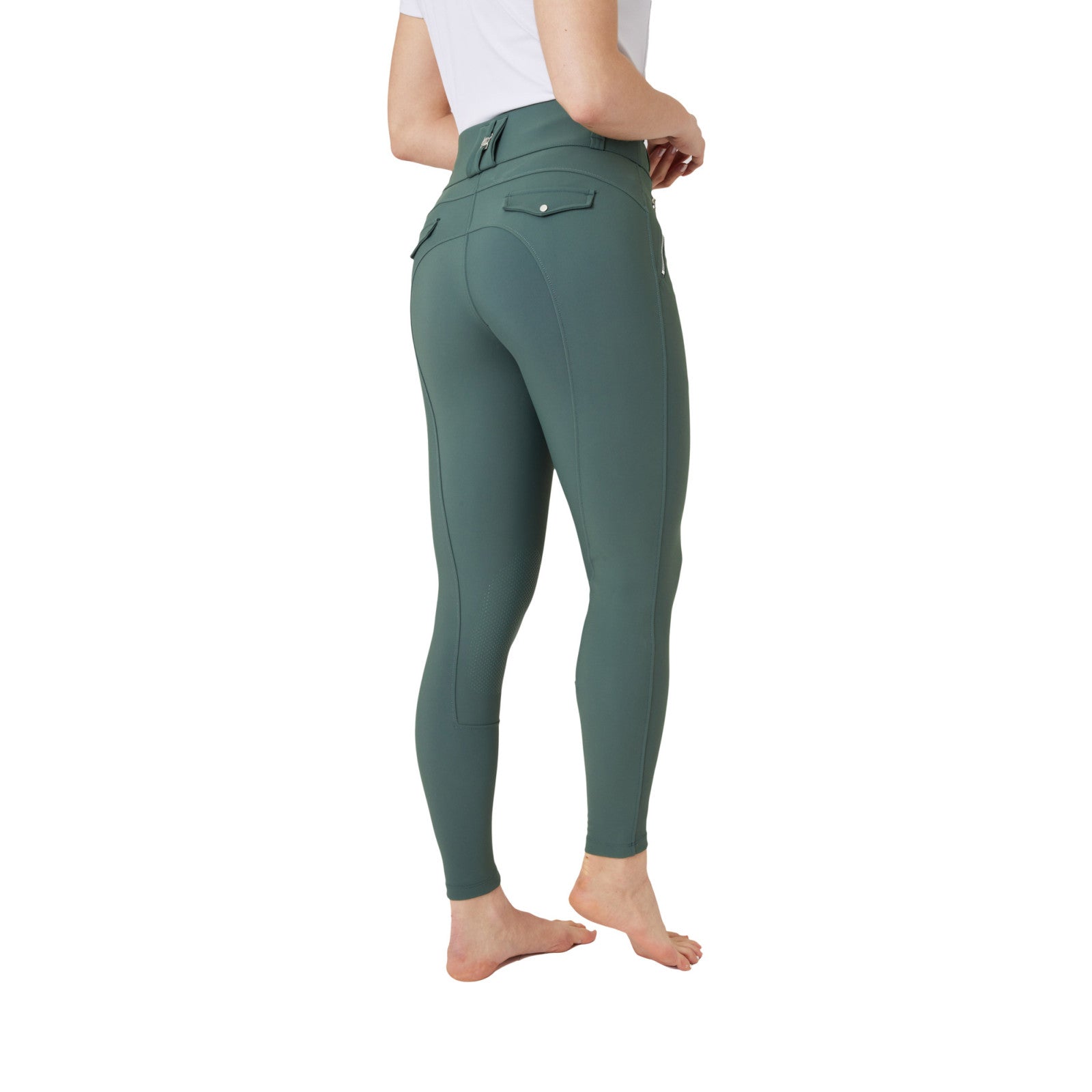 Made of an all-season fabric with great stretch and a mid to high rise, these breeches are ultra comfortable. Want to take you phone with you? No problem, thanks to the deep pockets that fit even larger phone models just fine. For a touch of style fake pockets have been added on the backside. The silicone knee grip, mostly preferred by show jumpers, provides a good hold in the saddle.
