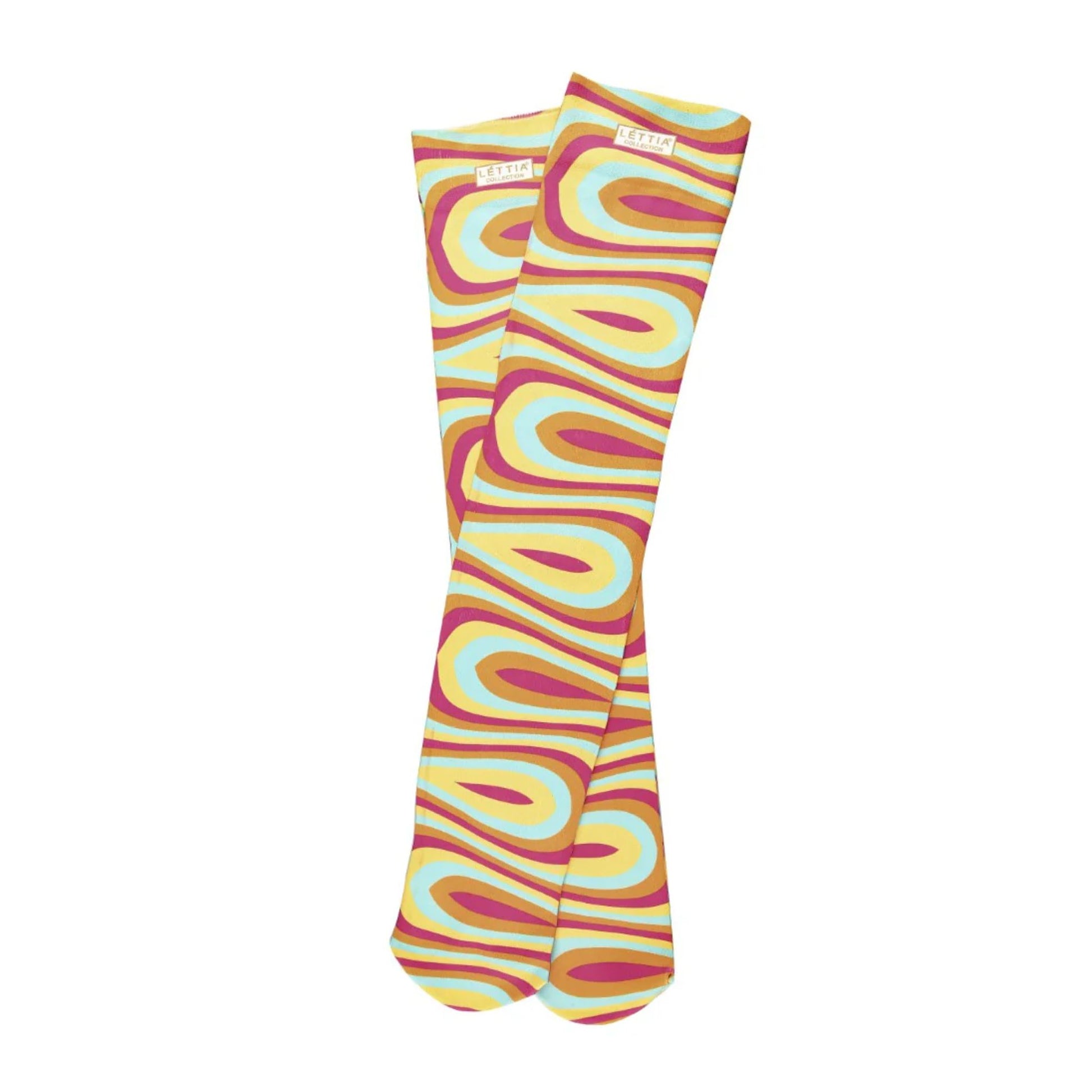 Get groovy with Lettia's Boot Socks! These colorful socks are not only soft, but also provide great support and cushioning for your feet. Perfect for tall boots and ideal for both showing or schooling, these socks add a fun touch to your equestrian gear. Pair these socks with this groovy matching saddle pad.